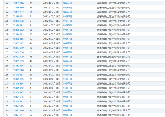 盤箸有喜(上海)生物科技有限公司申請注冊“鐘薛低”“鐘薛不低”“鐘薛不高”“鐘薛小高”“鐘薛步步高”商標。天眼查顯示,商標防御該公司由鐘薛高食品(上海)有限公司全資持股。